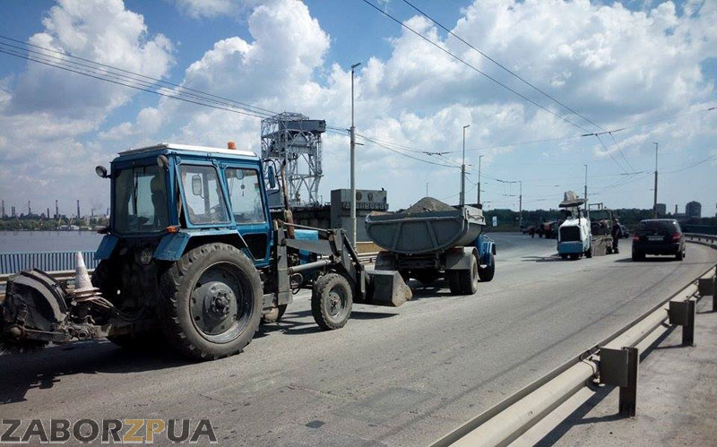 В Запорожье на ДнепрГЭСе идут ремонтные работы. Коммунальщики после обеда взялись за ремонт дороги. Из-за этого образовалась большая пробка.