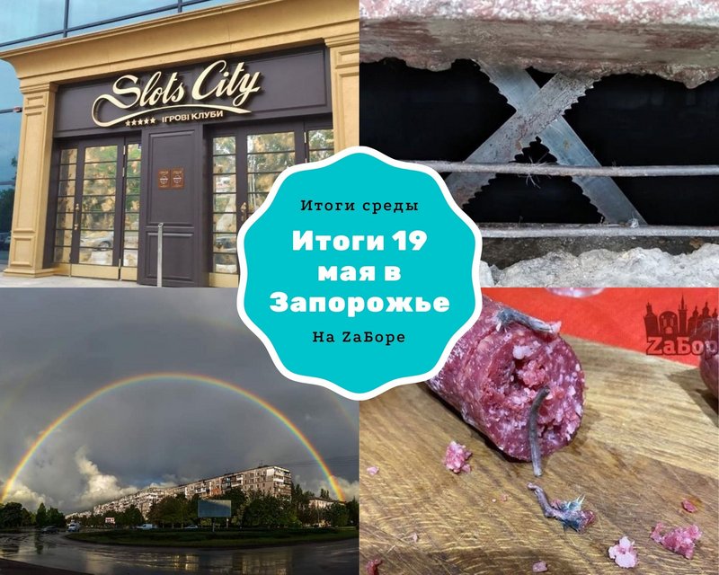 19 мая в Запорожье было прохладно и ветрено. А уже во второй половине дня начался дождь. А после дождя появилась радуга и запорожцы стали массово делиться фото природного явления в соцсети. В общем, это был вечер радуг. Разгорелся в Сети и скандал по поводу колбасы от торговой марки "Гармаш". Так, запорожанка нашла в мясном изделии червей. Такой же "сюрприз" ожидал и одесситку. А вот в Житомире мужчина в колбасе от данной фирмы обнаружил уже крысиные хвосты и лапы. Негодуют запорожцы и по поводу пил, которыми закрыли окно в подвале в одном из домов Шевченковского района. Зооактивисты говорят, что пилы поставили, чтобы закрыть доступ котам, которые живут в подвале. Одна жительница дома активно отстаивала позицию в соцсети, что все это ложь и никаких пил на подвалах нет. А потом другой житель заявил, что пилы поставили для защиты от воров. В общем, они ещё не определись с единой позицией. Стало известно, что на этой неделе (уже в четверг) откроется первое казино в городе, которое расположилось на месте бывшего ночного клуба "Кроубар". А комитет Верховной рады принял решение переименовать поселок Бильмак в Каменку. Стоит отметить, что несколько лет назад, когда Куйбышево переименовывали в Бильмак, местные жители были категорически против такого названия. Активисты же считают, что название Каменка блеклое и никак населенный пункт не выделяет в череде других. Подробнее о событиях дня - в новостях "ZаБора".