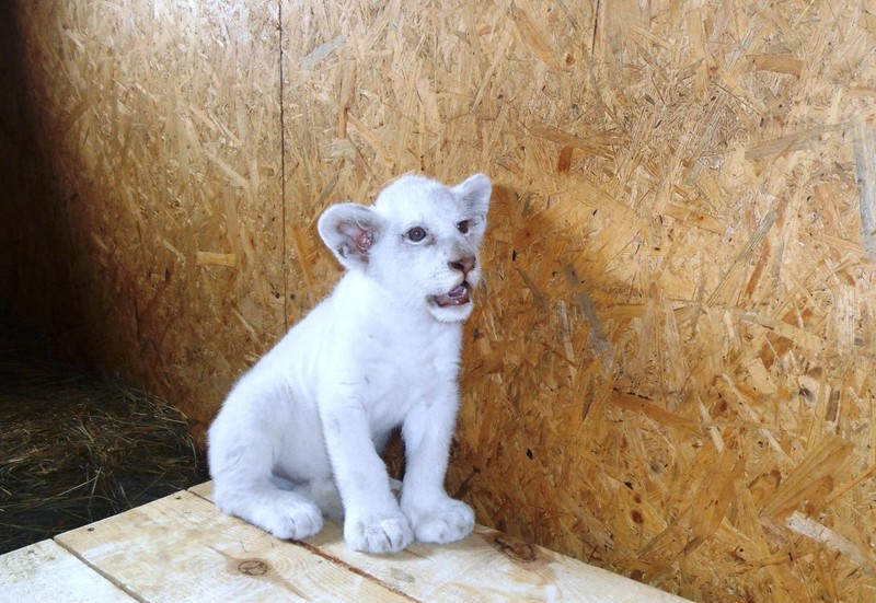 В зоопарке Бердянска поселился необычный львенок. Голубоглазый блондин Белуши успел стать любимчиком.