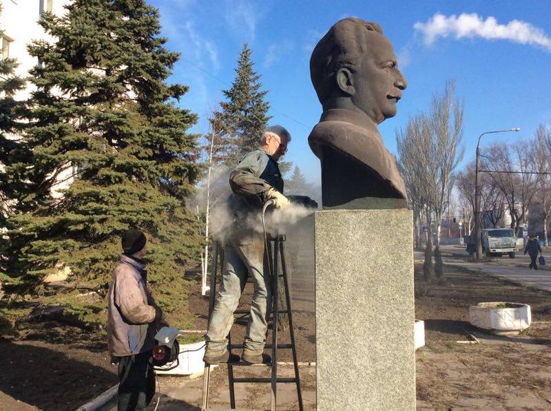В Запорожье снесли Орджоникидзе. Бюст, стоящий перед районной администрацией убрали за 8,5 тысяч гривен и пару часов времени.