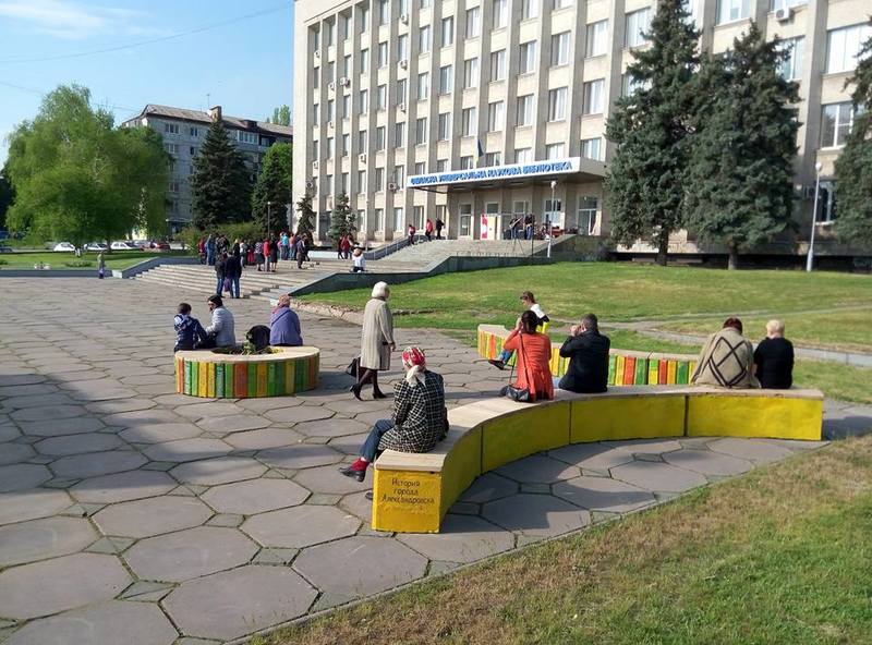 Кроме этого, возле Областной библиотеки им. Горького установили скамейки. И не обычные. Изготовление и установку арт-лавочек инициировали волонтеры. Круговая скамейка и две дуговые оформлены книжных полок. Фасады лавочек - корешки книг. Все покрашено яркими, насыщенными летними цветами.