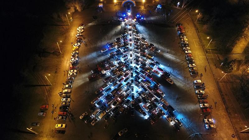 В Запорожье построили рекордную елку из автомобилей. 24 декабря на каскаде фонтанов Радуга в Запорожье установили национальный рекорд Украины. 270 автомобилей выстроились в форме новогодней елки, став самой масштабной елкой из авто в нашей стране.