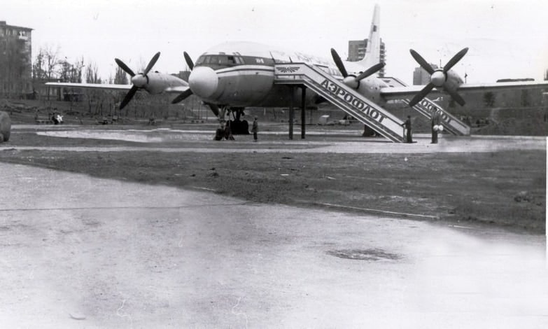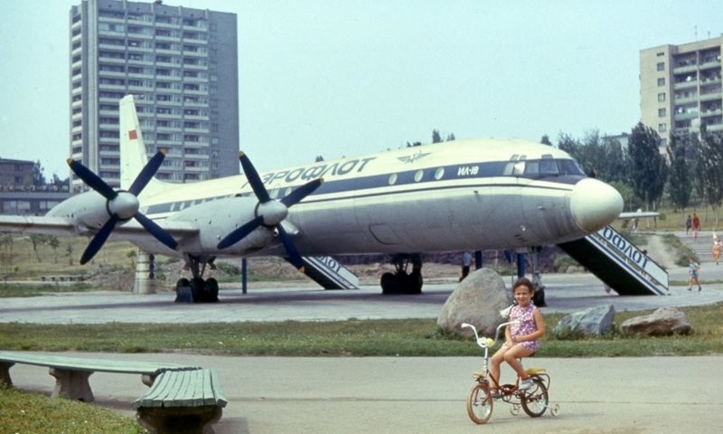 Таких самолетов стояло два. Один разместился в парке Трудовой славы, второй в парке Бочарова в Шевченковском районе. Размещение "Ил-18" в парке Трудовой славы, было похоже на целую операцию. Сначала самолет временно лишили крыльев, и в парк Трудовой славы его ввозили по частям: отдельно – фюзеляж, и отдельно крылья. Также, для его перевозки тогда смонтировали огромную платформу, а по пути следования был создан "открытый коридор" и отключено несколько линий передач. Так, Любовь Хорошилова, говорит, что была свидетелем, того, как перевозили фюзеляж. Ее тогда поразила машина с двумя кабинами, в которой лежал самолет. Женщина отмечает, "1.05.81 Забираю сына и племянников после киносеанса. А в дополнение добавлю, что была свидетелем перевозки фюзеляжа по Победе. Меня поразила машина с двумя кабинами, между которыми лежал самолёт".