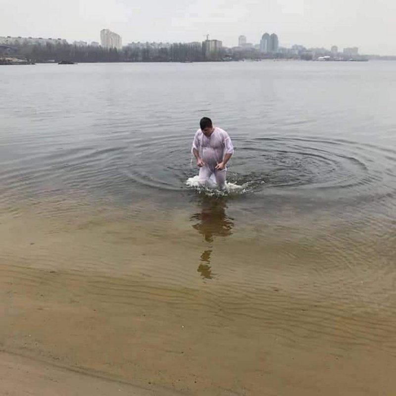 - Член политической партии "Єднання", депутат Запорожского горсовета Дмитрий Серый окунался на Правобережном пляже.