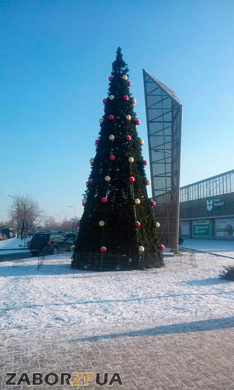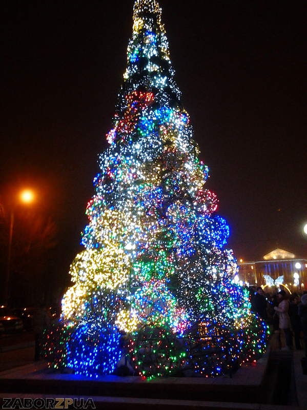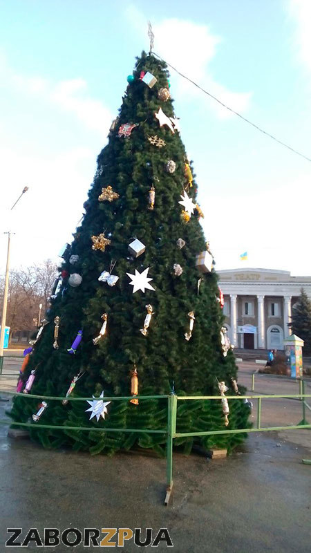 Место на пл. Фестивальной в этом году заняла главная елка Запорожской области. В подборке самых-самых елок страны, этой елке мы присудили звание «самая дешевая». Ведь, бюджет ни области, ни города не потратил ни копейки на это дерево. Ель из Западной Украины - подарок любимым запорожцам от Григория Самардака.