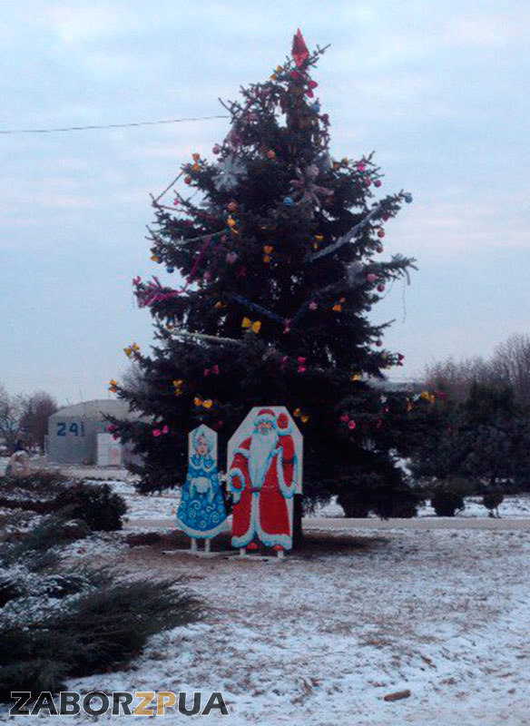 Главные елки районов города Запорожья в этом году мягко сказать скромные.