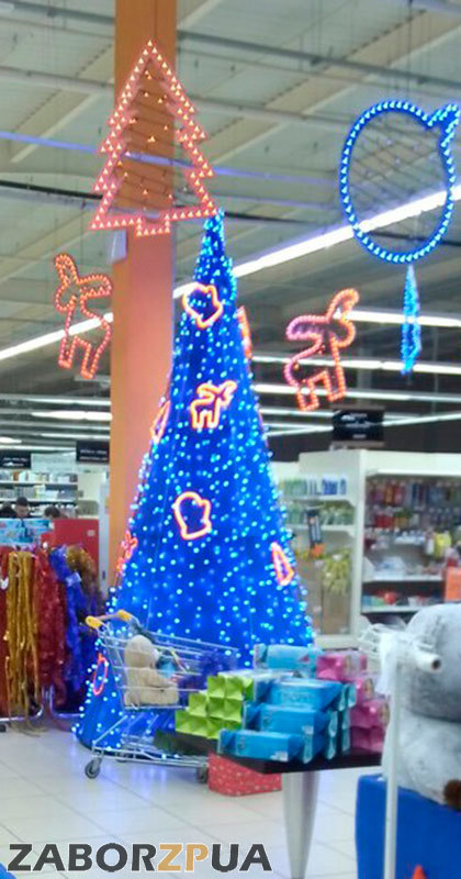 Отдельно хотелось бы подчеркнуть елки крупных магазинов, супермаркетов и торговых центров.