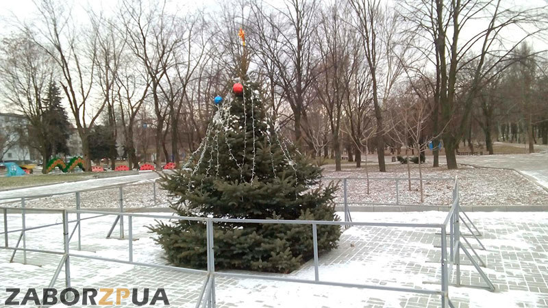 Главные елки районов города Запорожья в этом году, традиционно, скромные.