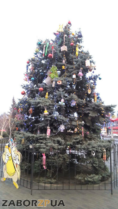 Место на пл. Фестивальной в этом году заняла главная елка Запорожской области. В подборке самых-самых елок страны, этой елке мы присудили звание "самая дешевая". Ведь, бюджет ни области, ни города не потратил ни копейки на это дерево. Ель из Западной Украины - подарок любимым запорожцам от Григория Самардака.