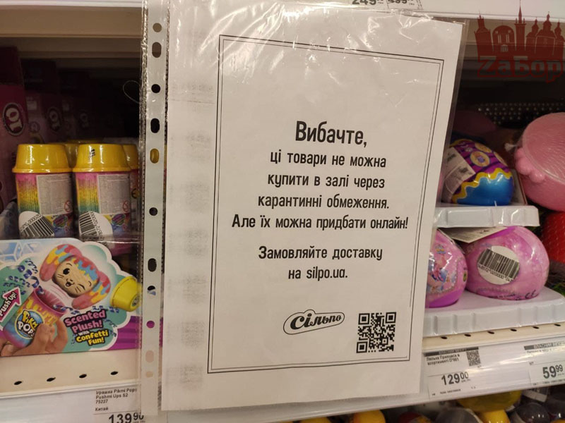 В "Сильпо" появились объявления о том, что в торговом зале купить определенные товары нельзя, но их можно приобрести онлайн. Но, в объявлениях указано, что им можно приобрести онлайн. На самом деле их можно приобрести просто так. Как говорят сами продавцы, они без проблем все пробивают в чеке.