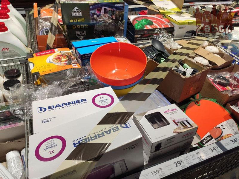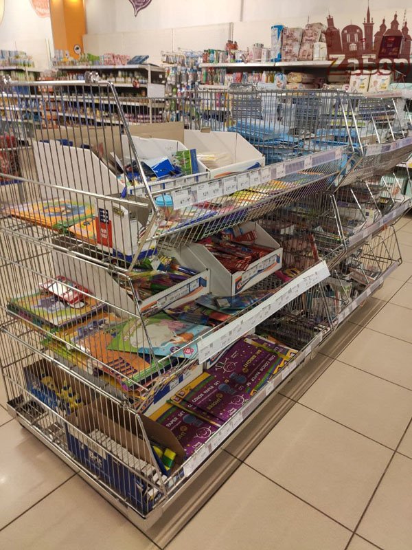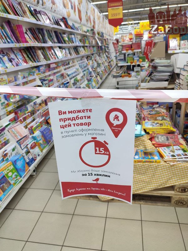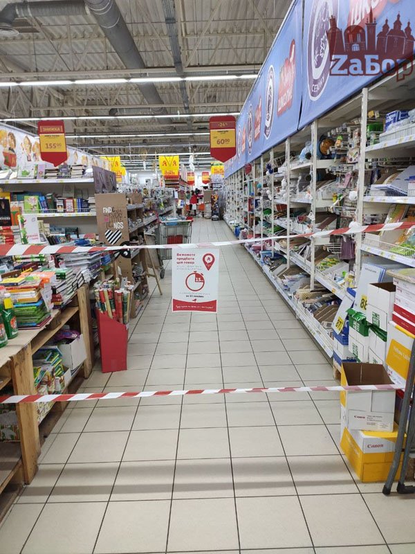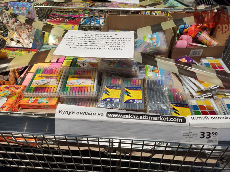 Ну и "АТБ" тут правила карантина соблюдаются. Полочки с канцелярией, одеждой, игрушками и т.д. перекрыты, вместо этого указан сайт, где можно оформить онлайн заказ.