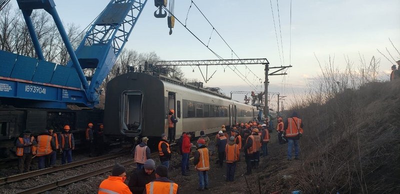 29 марта в Днепропетровской области с рельс сошел поезд "Интерсити", который следовал по маршруту "Киев-Запорожье". На странице "Укрзализныци" сообщили, что все вагоны поднято, а поезд "Hyundai Rotem" отправили на диагностику и восстановление в Киев, передает "ZаБор".