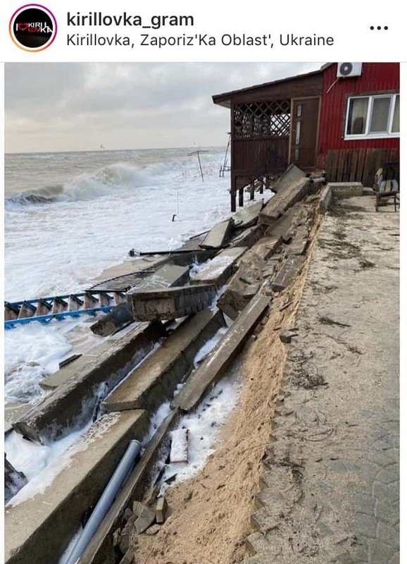 Так, из-за непогоды в Кирилловке большой ущерб понесли базы отдыха которые расположены ближе к берегу. Тут из-за плохих погодных условий остались выкорчеванные деревья, разбитая плитка и повалены заборы.