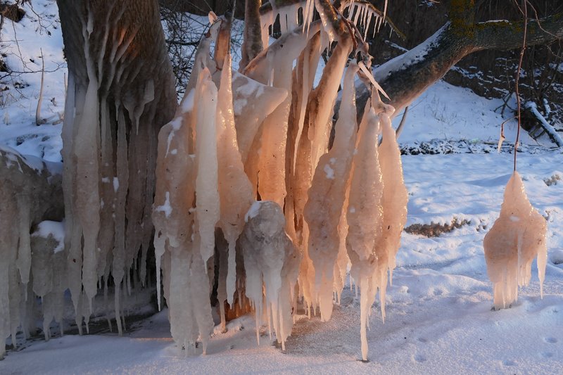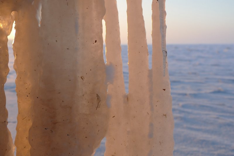 Алексей считает, что сталактиты образовались из-за серьезного шторма. Так же красивыми сосульками хвастаются жители Бердянска. Фотограф Юлия Покас показала, как художественно застыла вода на берегу Азовского моря.