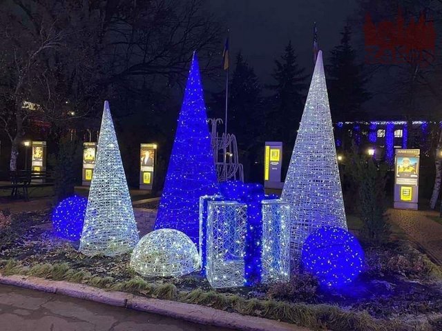 Главная елка Запорожья, в этом году снова на площади Маяковского, ее украсили шарами, синими и белыми гирляндами, а возле нее установили старых оленей и снеговиков. Украсили привычно и бульвар Шевченко. Тут в прошлом году создали арки из иллюминации, а в этом году их продлили. К слову, на это потратили из бюджета почти 2 миллиона гривен.