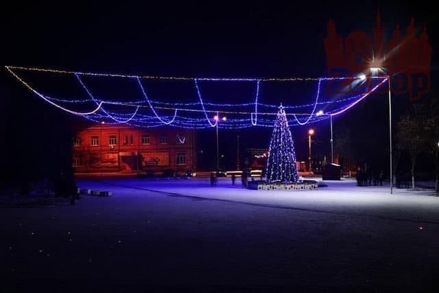 Помимо главной елки, создали инсталляцию из трех конусных елок и подарка, которые сделаны из гирлянд. Установили их возле ЗЖРК. Любопытно, что местные жители (в комментариях) считают яркой (и отдают предпочтение) именно иллюминации возле железнорудного комбината.