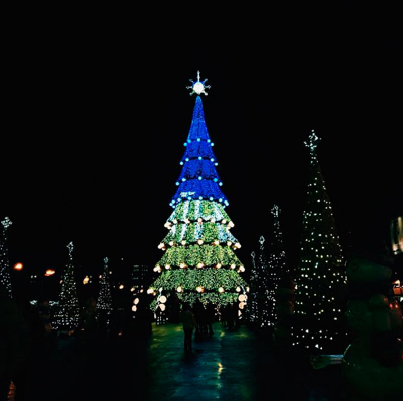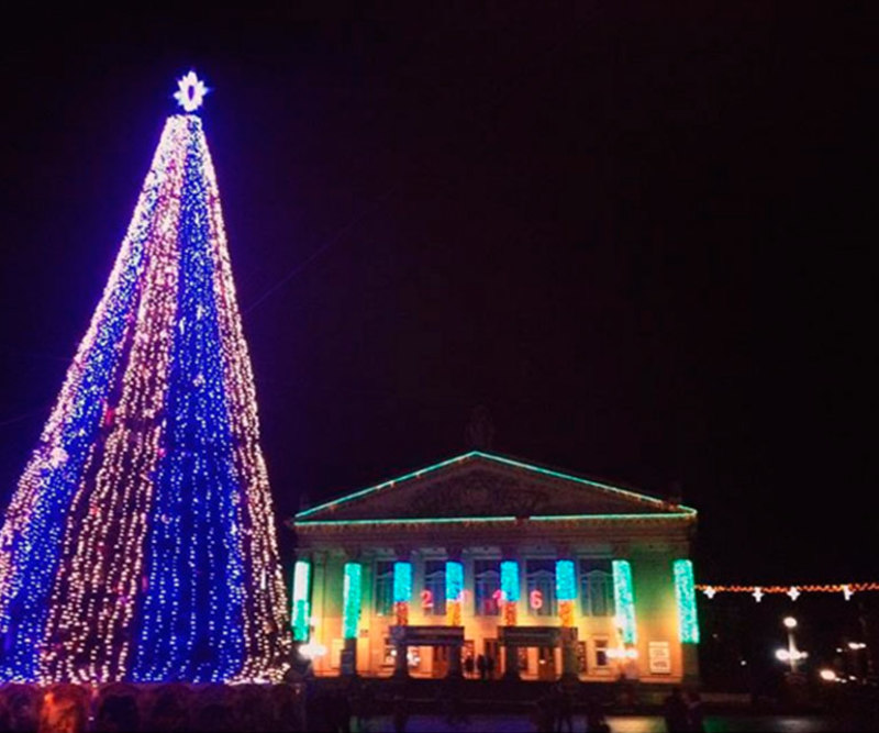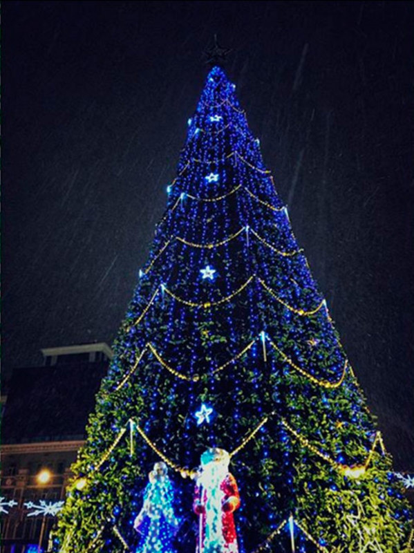 Самое длинное украшение на главной елке Одессы (гирлянда длинной 4 км).