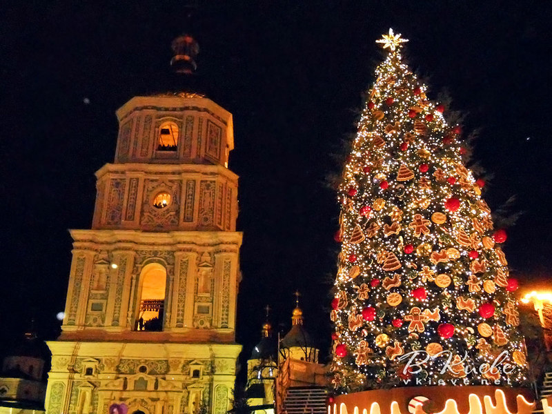 Самая высокая натуральная елка - в Киеве (25 метровая ель) из Ивано-Франковска установлена на Софиевской площади. В этом году на елку повесили не только игрушки и гирлянды. Изюминкой новогоднего киевского дерева стали пряничные человечки, которыми обвешали всю елку и которых еще не успели съесть.