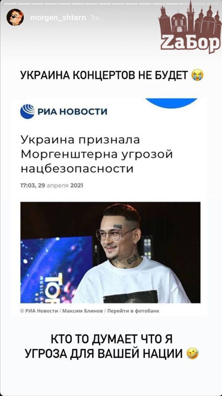 Российскому рэп-исполнителю Моргенштерну запретили въезд в Украину. На своей странице в соцсети артист отреагировал на данное решение, передает "ZаБор".