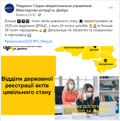 Юго-восточное межрегиональное управление Министерство юстиции города Днепр, опубликовали позапрошлые данные актов гражданского состояния, передает "ZаБор".