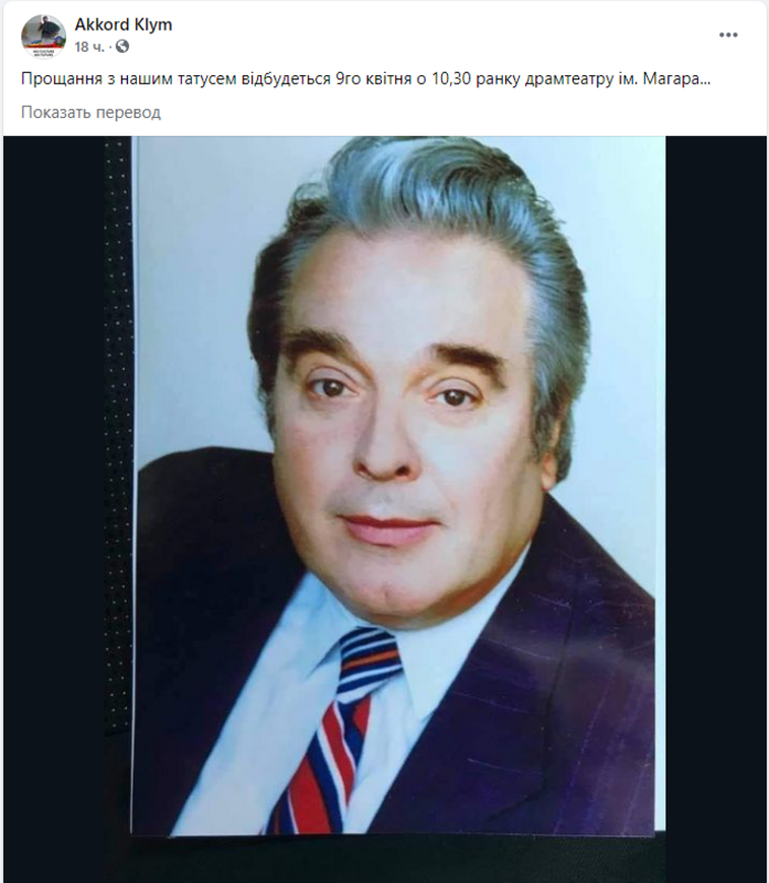 В соцсети родственники Александра Гапона сообщи, что прощание с артистом состоится завтра, 9 апреля в 10:40 в театре им. Магара.