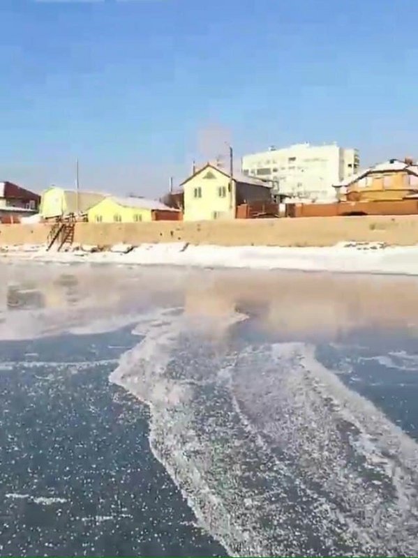В Бердянске замерзло море в заливе у центральной набережной. Не смотря на проглядывающие проталины, горожане вышли на лед с санками. Как сами они рассказывают, лед тут крепкий.