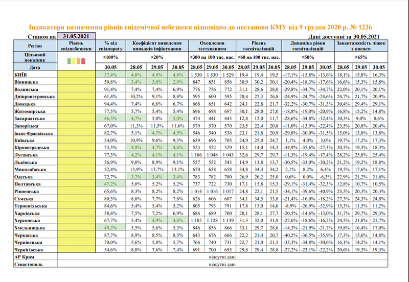 При этом, стоит отметить, что некоторые области приближаются к "зеленой" зоне. Среди них: г. Киев, Винницкая, Закарпатская, Ивано-Франковская, Кировоградская, Луганская, Одесская, Полтавская, Херсонская и Хмельницкая.