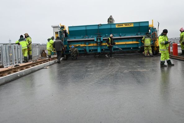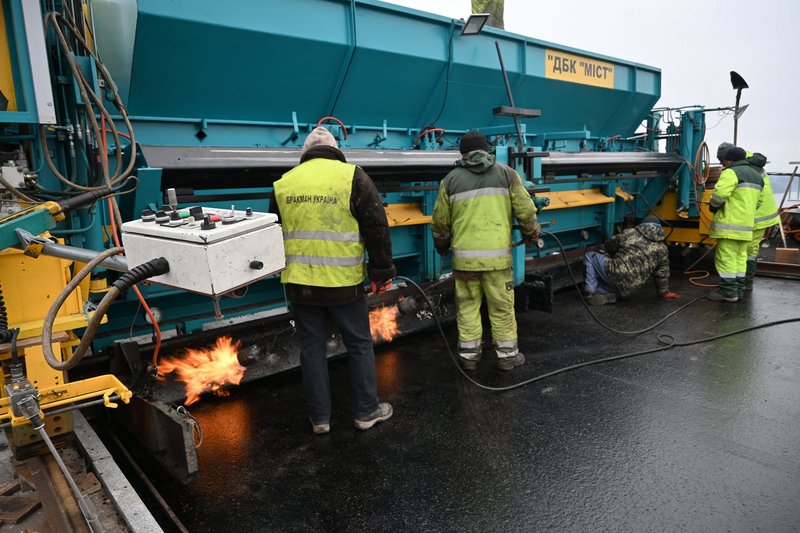 В Запорожье асфальт на новых мостах укладывают "черепашьей" техникой