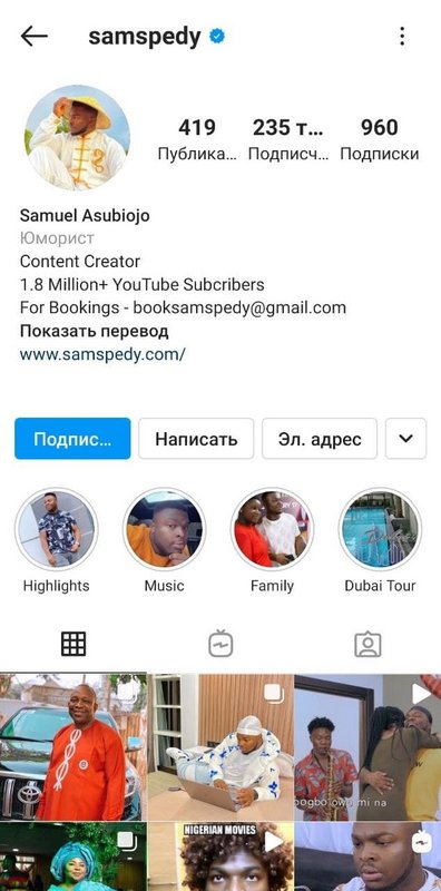 Samspedy (Samuel Asubiojo) - 26-летний нигерийский блогер миллионик. Свой первый YouTube-канал он создал 28 ноября 2012 года. С этого времени на его канале 1,88 миллионов подписчиков. А в 2019 году молодой человек получил золотую кнопку Ютуба (получают ее, когда канал достиг 1 000 000 подписчиков).