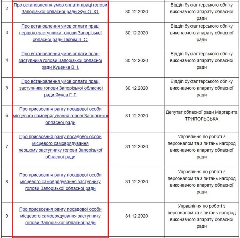 Так, согласно проектному решению Запорожского областного совета 8 созыва, депутаты хотят установить надбавки за особый характер работы. Об этом стало известно на сайте Запорожского облсовета, передает "ZаБор" .