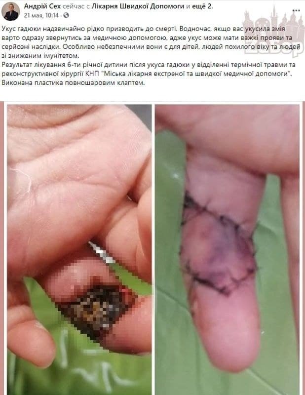 В Запорожье девочке, которую укусила змея, понадобилась пересадка кожи