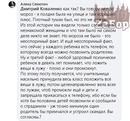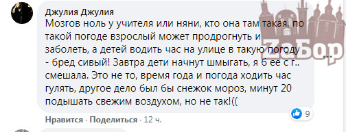 Другие же пользователи стали на сторону мамы, которая написла пост. Так, они говорят, что погода совершенно не для того, что бы гулять и наследующий день, дети могут просто заболеть.