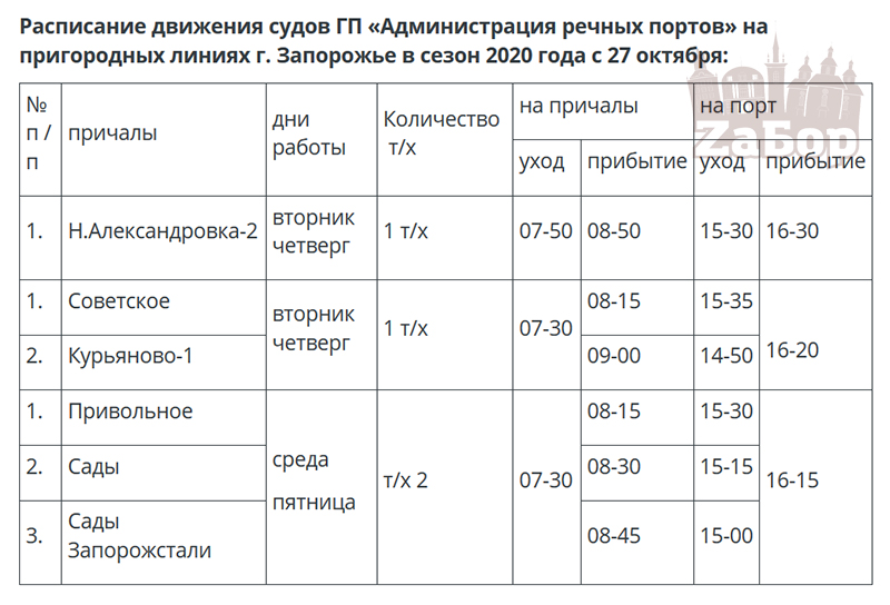 В Запорожье с 27 октября изменится график движения катеров к садово-огородным участкам. В частности, речь идет о вечерних рейсах, передает "ZаБор".