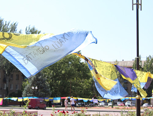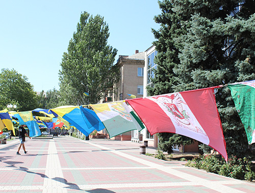 Перед пребытием в Запорожье, флаги вывешивались на центральной площади Мелитополя. После нашего города, эстафета будет передана Харькову и Киеву.