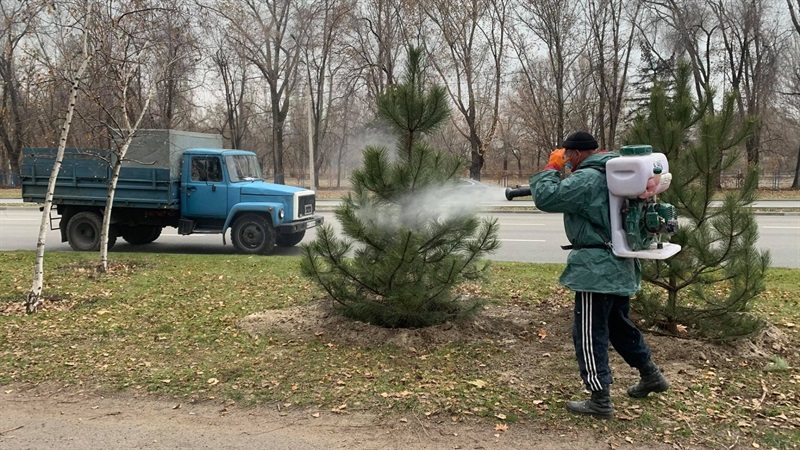 В Вознесеновском районе планируют обработать 400 елок, в целом по городу - около 1,5 тыс. В среднем на 6-7 елок уходит около 15 литров смеси. Работы в городе идут уже вторую неделю и продолжатся до конца текущего года.