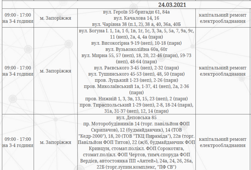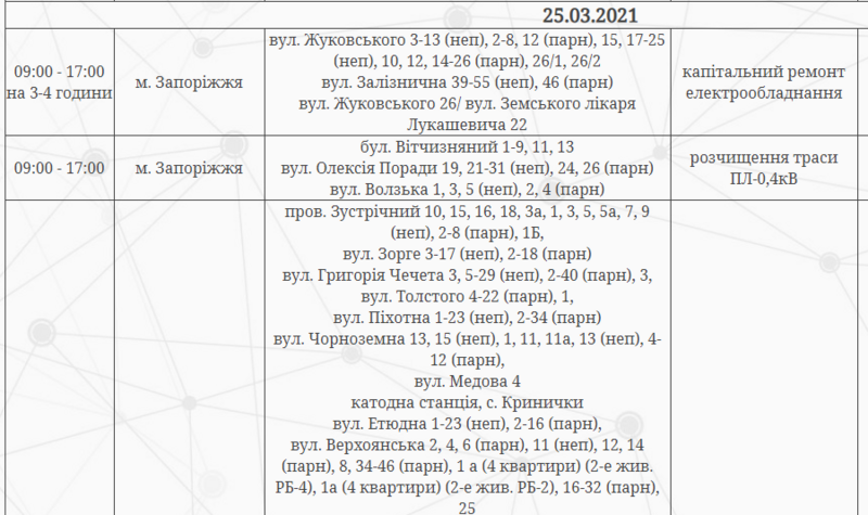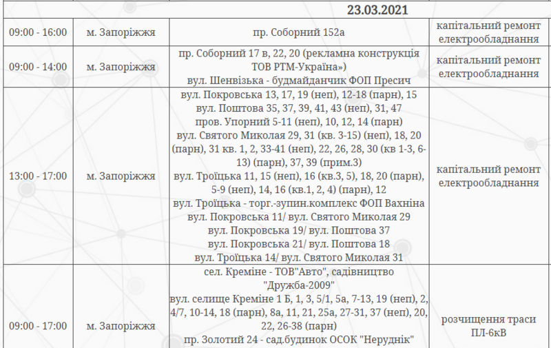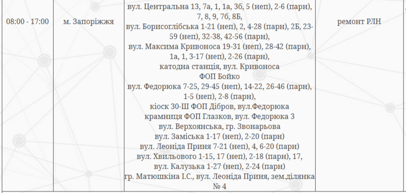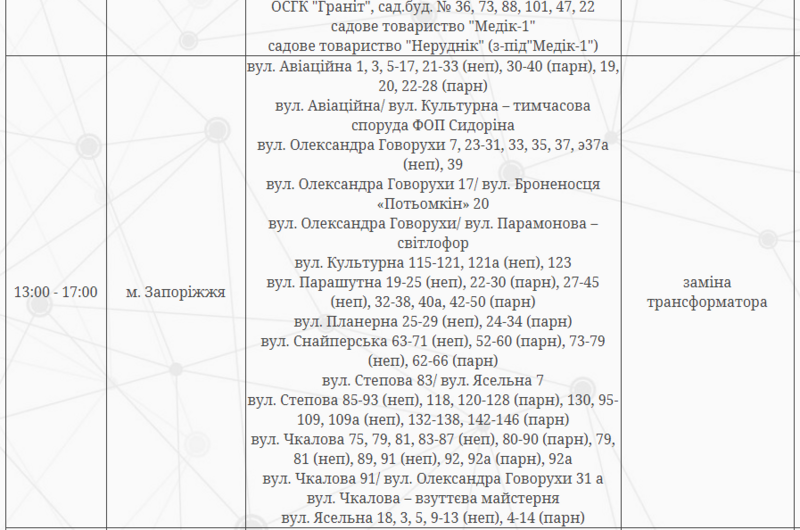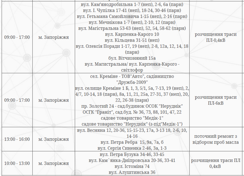 Отключение электроэнергии будет временным и состоится по таким адресам: