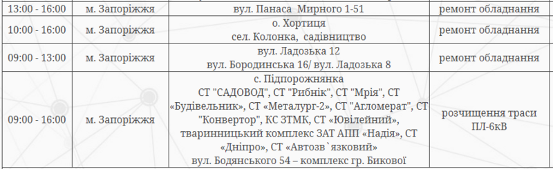 Так, в связи с этим тысячи абонентов в городе останутся без света. Электричество отключат в четырех районах города: Александровском, Коммунарском, Шевченковском и Днепровском.