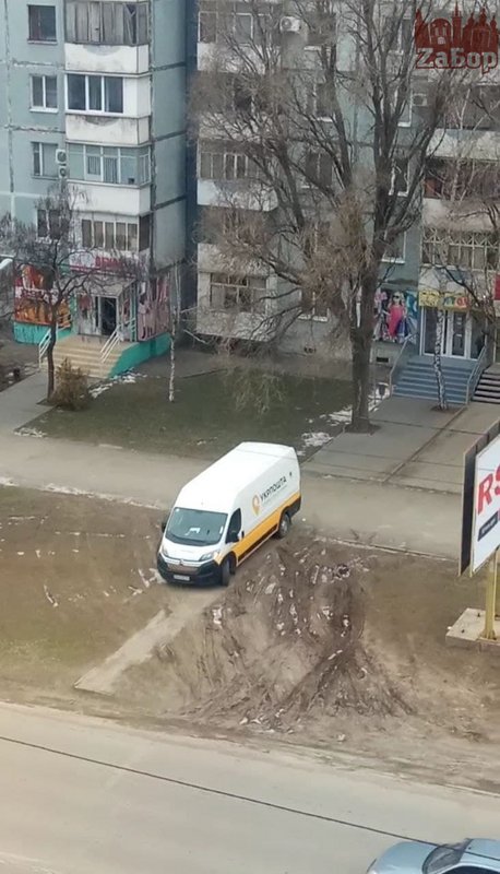 Возле одного из отделений почты Хортицкого района, из-за того что для машин не обеспечен надлежащий подъезд, служебному автомобилю приходится постоянно выезжать через зеленую зону. Это вызывает возмущение у местных жителей, которые ежедневно наблюдают подобную картину, сообщает "ZаБор".