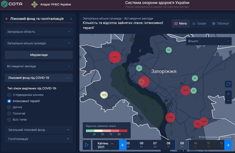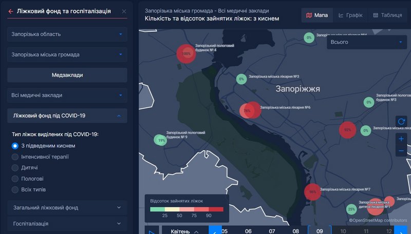 Так, в Запорожской областной больнице занято 6 из 6 коек интенсивной терапии, которые выделили под COVID-19.
