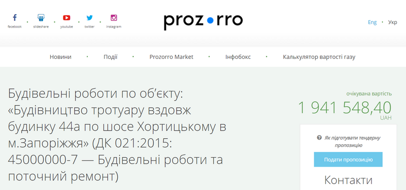 Администрация Хортицкого района гарода объявила тендер на строительство тротуара вдоль дома 44-а по Хортицкому шоссе. Многоэтажка находиться в 17 микрорайоне, за которым заканчивается жилая застройка города. Об этом сообщает Запорожский проект расследований с ссылкой на "Prozzoro".