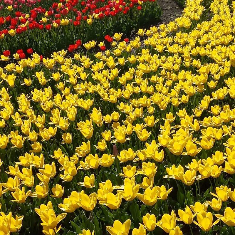 Высаженные на клумбе, стройными рядами, тюльпаны, радуют глаз прогуливающихся в Вознесеновском парке запорожцев.
