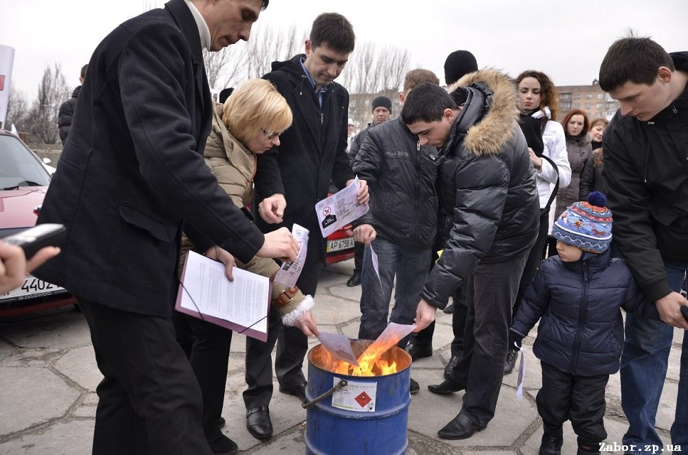 В Запорожье на центральной площади сожгли права пьяных водителей