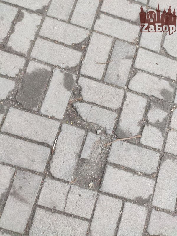 Корреспонденты "Забора" приехали посмотреть на состояние плитки и убедились, что плитка действительно разрушается во многих местах.