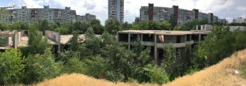 Планировалось, что на данном участке возведут жилой комплекс "Тихий центр". Однако в 2015 году запорожская фирма "Константа" была признана банкротом и строительство остановилось.