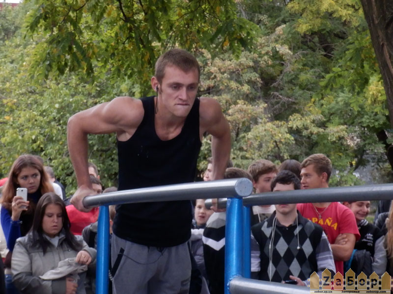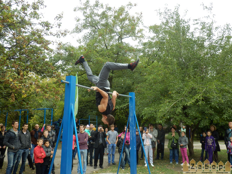 Сегодня, 21 сентября, в Запорожье в парке с 13.00 до 17.00 в парке по ул. Патриотическая,74а открыли новую спортивную площадку, которая включает в себя турник, брусья, и лестницу. Там же прошли мастер-классы и соревнования любителей Street Workout.