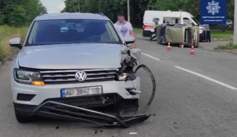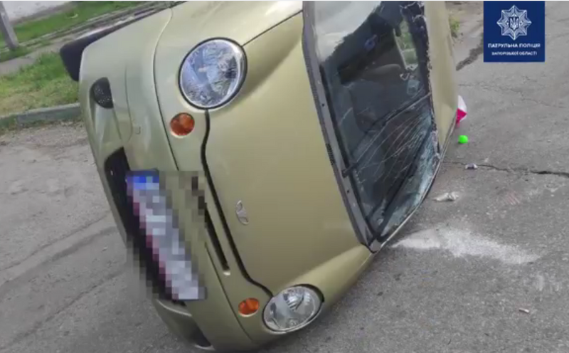 В Запорожье перевернулся автомобиль, в котором находился ребенок (видео)