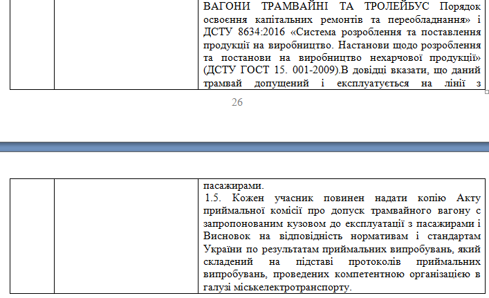 Помимо этого, заказчик требует от компаний, которые хотят учувствовать в аукционе дополнительные документы. А именно: ранее выполненные подрядчиком договора с аналогичными предметами закупки, а также справку от горэлектротранспорта, эксплуатирующей пассажирские трамвайные вагоны, где предложенный кузов установлен при проведении капитального ремонта трамвая Т-3.