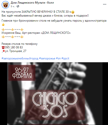 Несмотря на то, что заведение должно будет оплатить большой штраф, администрация "Дома Лещинского" приглашает всех на закрытую вечеринку, которая состоится 26 и 27 февраля. Об этом стало известно на официальной странице арт-ресторана.