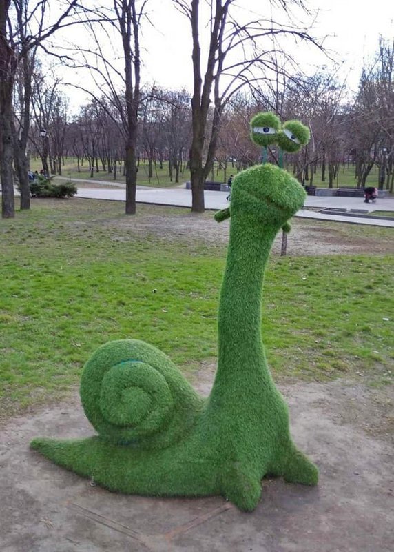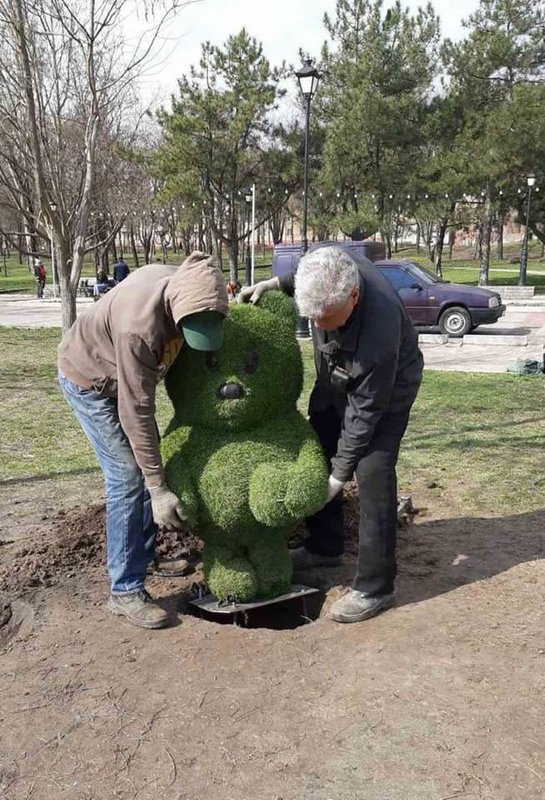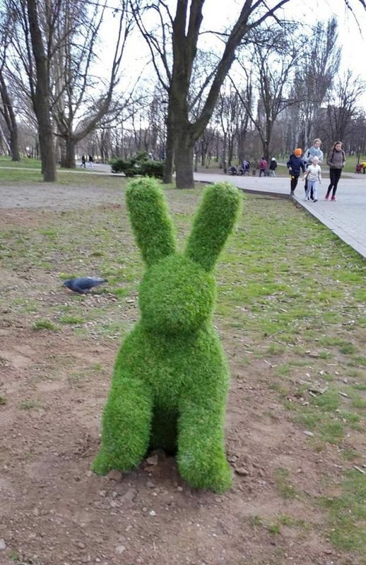 В 2020 году в парке Трудовой славы появились "травяные" фигуры. Тогда тут установили фигуры Винни Пуха и Пятачка, зайчиков, гоночный автомобиль и динозавра. Но спустя сутки, зеленые скульптуры пришлось демонтировать, потому что их сломали.