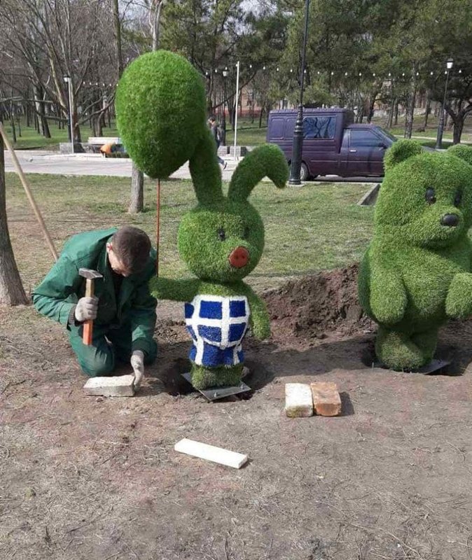 В Вознесеновском районе Запорожья на алее Трудовой славы установили обновленные зеленые фигуры, которые сломали в прошлом году передает "ZаБор".